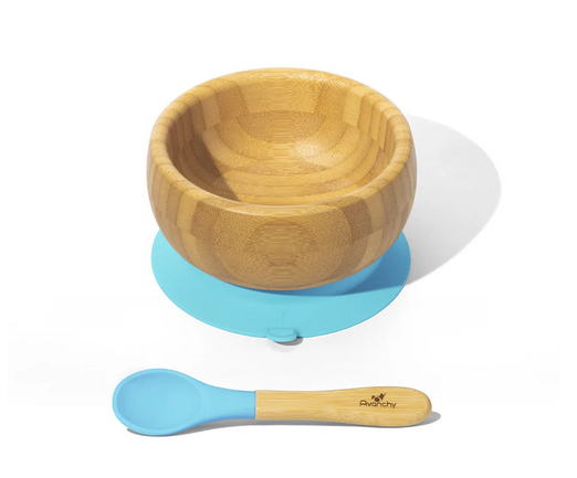 Avanchy Bamboo Stay Put Suction Baby Bowl + Spoon - Blue