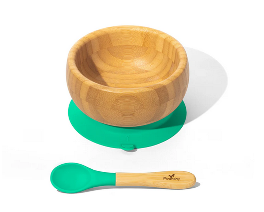 Avanchy Bamboo Stay Put Suction Baby Bowl + Spoon - Green
