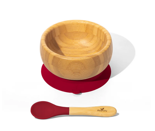 Avanchy Bamboo Stay Put Suction Baby Bowl + Spoon - Red