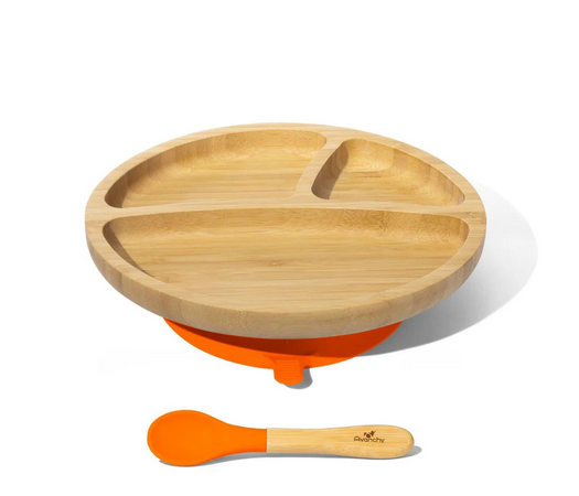 Avanchy Bamboo Suction Toddler Plate + Spoon - Orange
