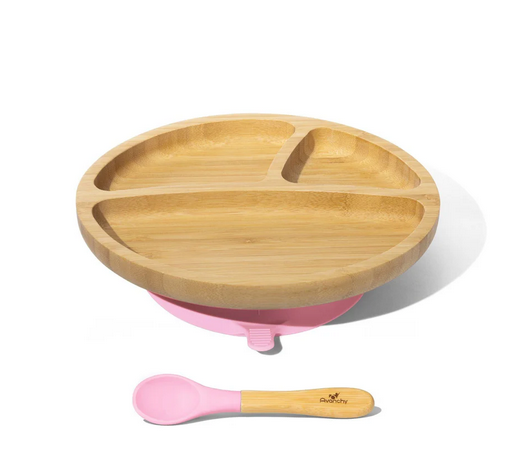 Avanchy Bamboo Suction Toddler Plate + Spoon - Pink