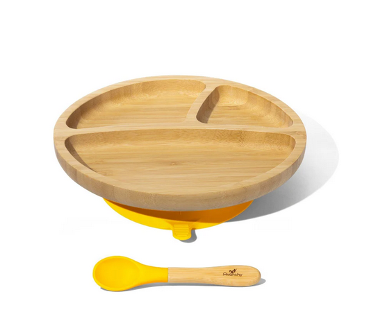 Avanchy Bamboo Suction Toddler Plate + Spoon - Yellow