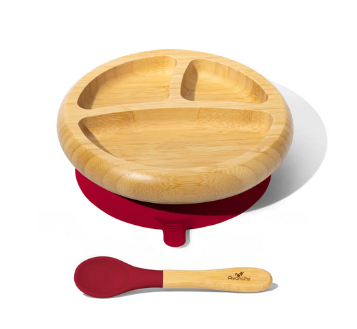 Avanchy Bamboo Sunction Baby Divided Plate + Spoon - Magenta