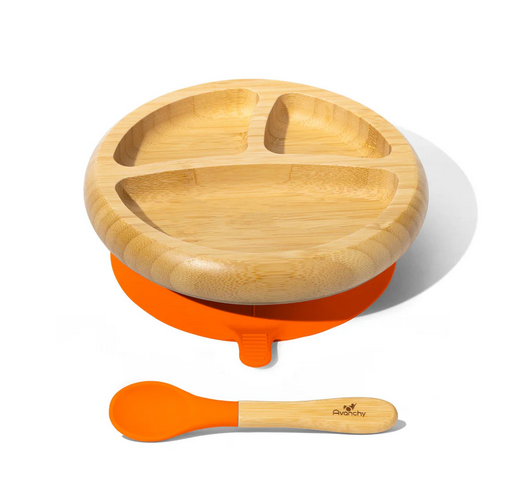 Avanchy Bamboo Sunction Baby Divided Plate + Spoon - Orange
