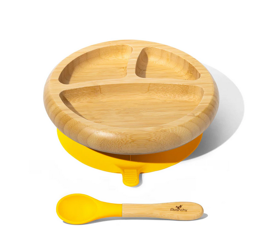 Avanchy Bamboo Sunction Baby Divided Plate + Spoon - Yellow