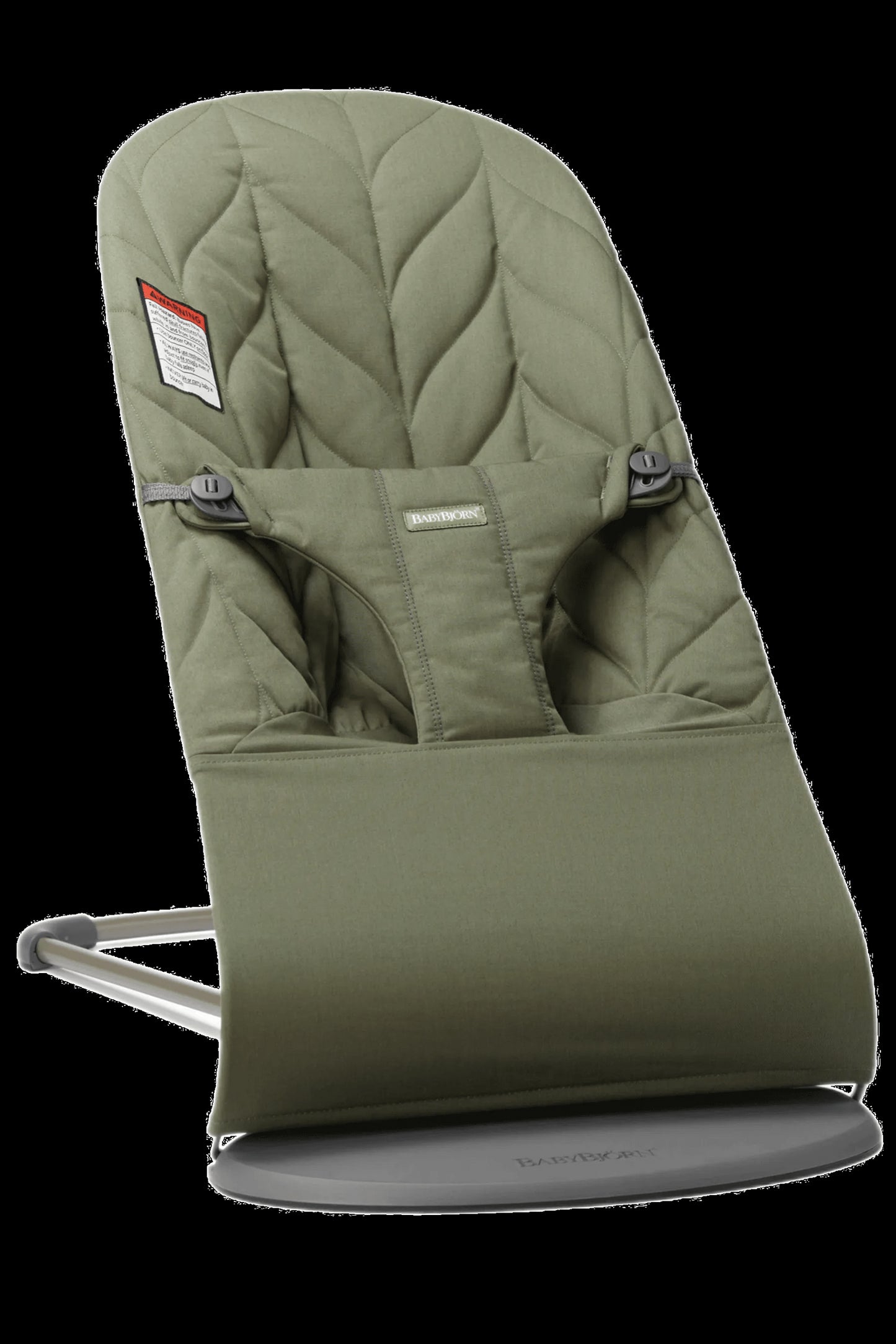 Baby Bjorn Bouncer Bliss, Light Grey Frame, Petal Quilt Cotton - Dark Green