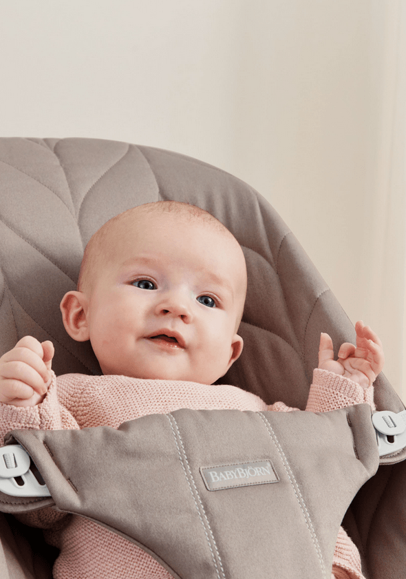Baby Bjorn Bouncer Bliss, Light Grey Frame, Petal Quilt Cotton - Sand Grey