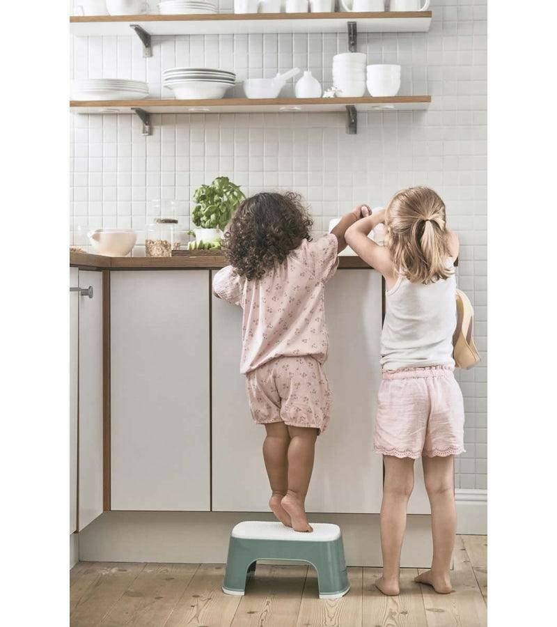 - Stays in place on the floor: The step stool has a well-thought-out design, with rounded corners and a rubber strip underneath to give it stability. Even fidgety little feet get a good and safe grip on the non-slip rubber surface of the step stool.
