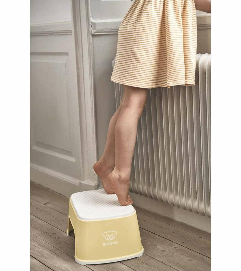 - Stays in place on the floor: The step stool has a well-thought-out design, with rounded corners and a rubber strip underneath to give it stability. Even fidgety little feet get a good and safe grip on the non-slip rubber surface of the step stool.