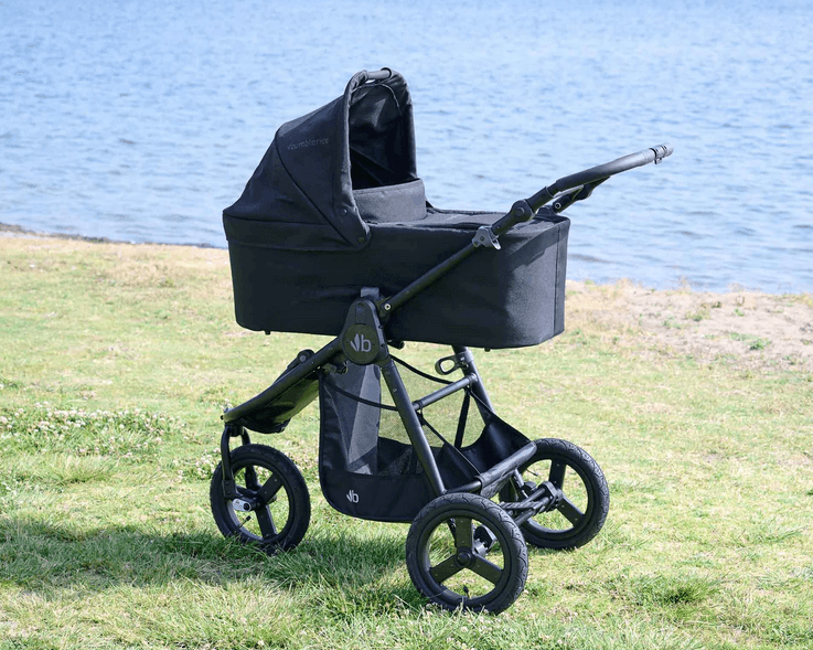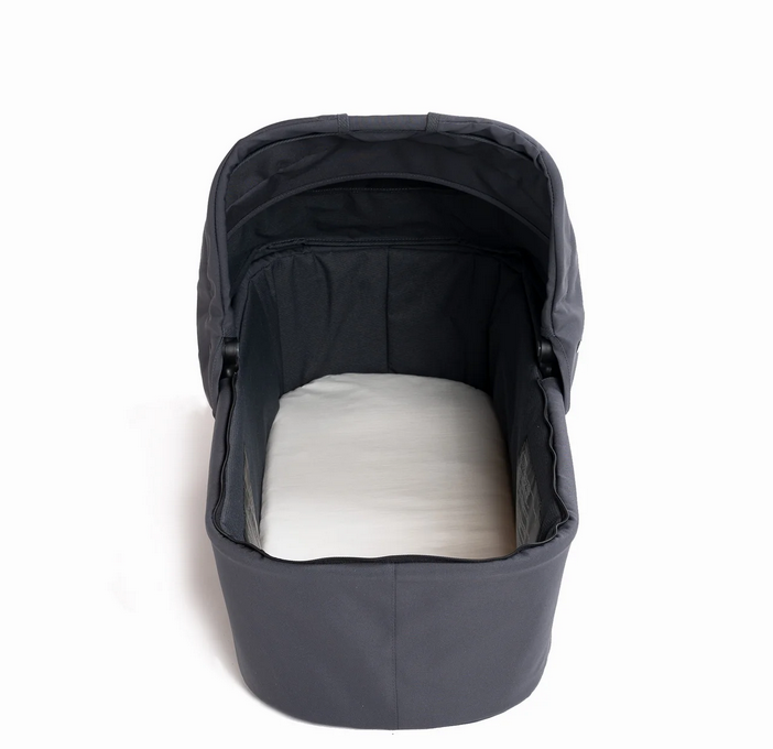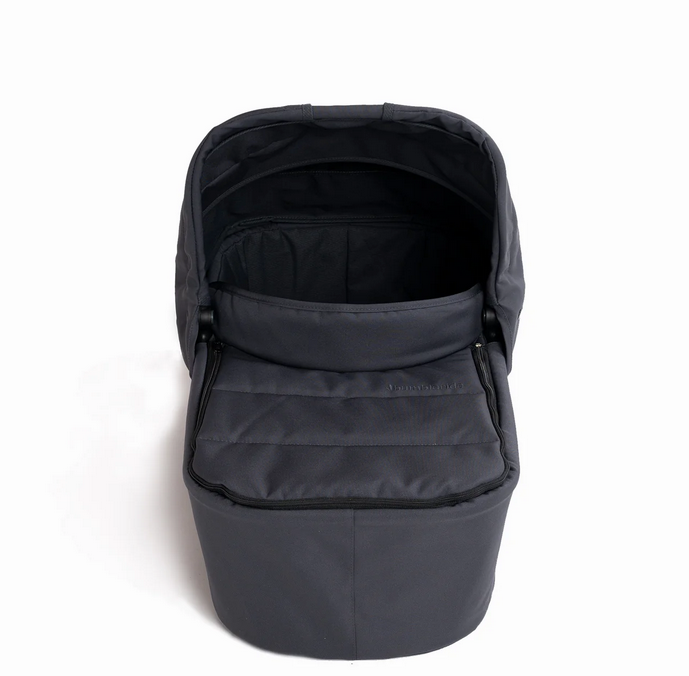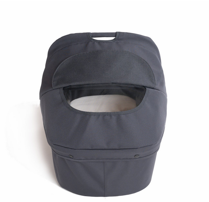 The Bumbleride single stroller Bassinet is an infant bed using OEKO-TEX certified 100% recycled polyester fabric, a vented wood base board and breathable polyester honeycomb mattress. The new bassinet has an added wind guard for extra protection from the elements. Compatible with 2016-2024 Bumbleride Era, Indie, and Speed, this Bassinet converts your stroller into a parent facing pram. Featuring a large SPF 45+ canopy with a pop-out extension (shown folded back above), zip on wind cover, and one-handed carrying handle.