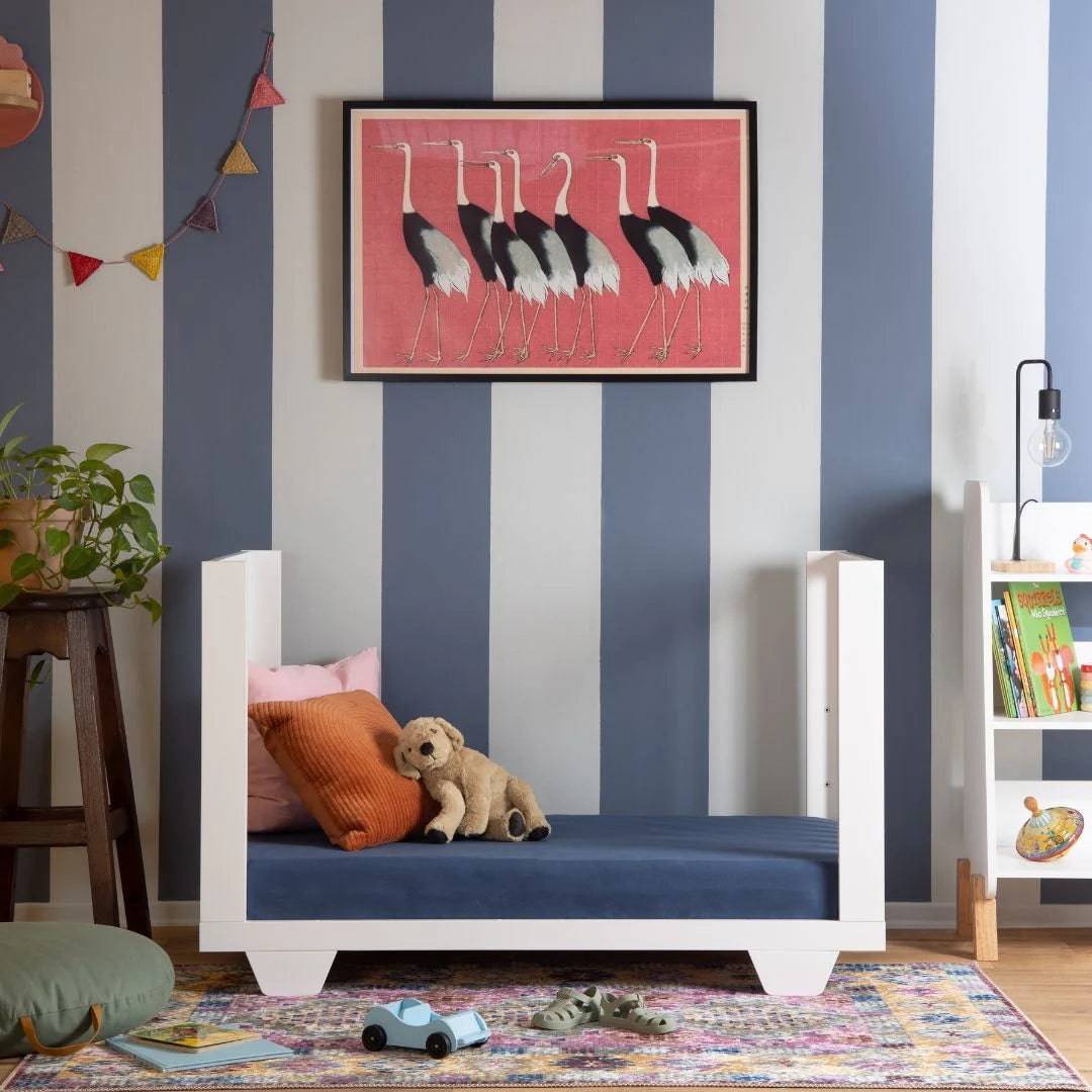 - Crib converts to cradle, toddler bed, daybed, or floor bed in a few simple steps