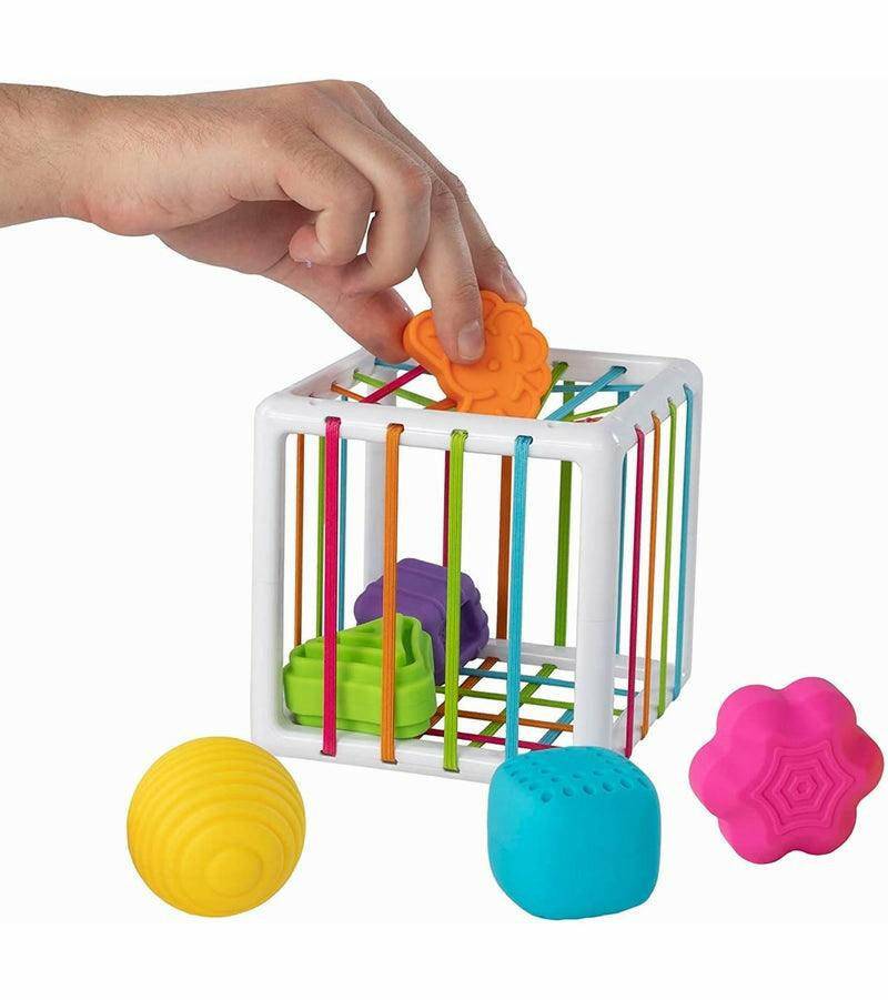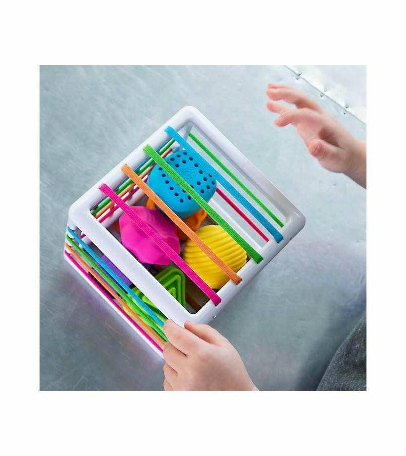But the best part? As kids push the shapes through the elastic bands of the cube, curiosity is sparked and young minds can't help but explore, experiment, and discover.
