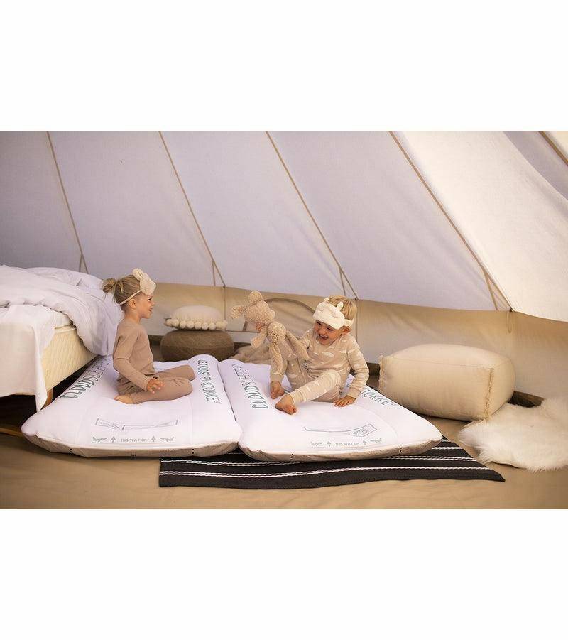 The CloudSleeper™ is the all-in-one inflatable travel bed for toddlers and children three years and above. It´s a travel bed made easy that´s small enough to fit inside your backpack or hand luggage. Lightweight and all-inclusive, it has no loose parts.