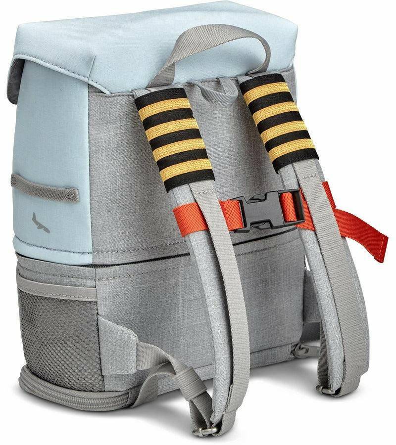 - Aviation inspired details, including mini aluminium seat buckle for opening and closing the lid, a JetKids Crew bag tag, and a set of detachable captain stripes