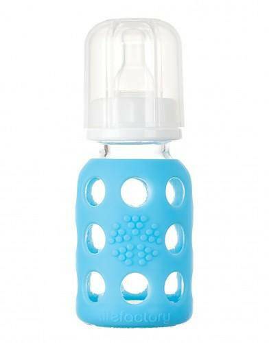 Life Factory 4 oz Glass Baby Bottle with Silicone Sleeve (sky blue)