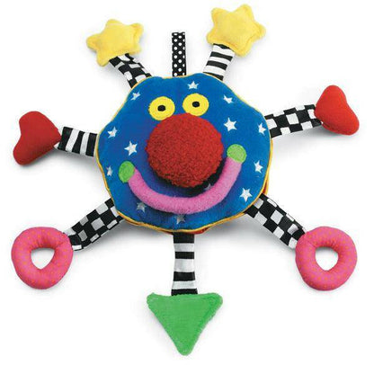 Same smiling face as our larger Whoozit, but small enough to tuck easily into a purse or diaper bag. Baby Whoozit is loved by babies everywhere and has garnered several prestigious awards and celebrity attention for its universal appeal and thoughtful design. Features 7 high contrast arms with many hidden noise makers including rattles, squeakers, and crinkle paper that perk up little ears. Plus, peek under Whoozit's squeaker nose to reveal a hidden mirror. With all these features, you'll quickly discover why Whoozit is Baby's Favorite Friend.