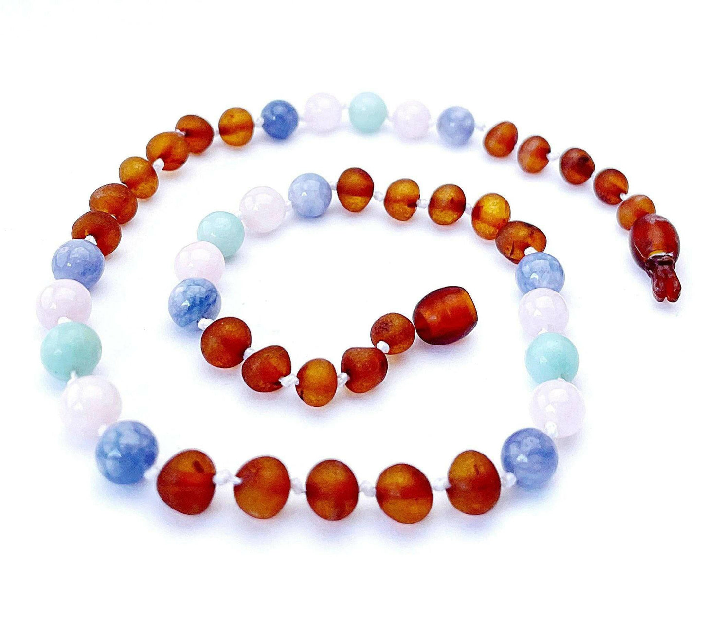 Momma Goose Overlord Baby Necklace Baltic Amber, Moonstone, Rose Quartz & Amazonite