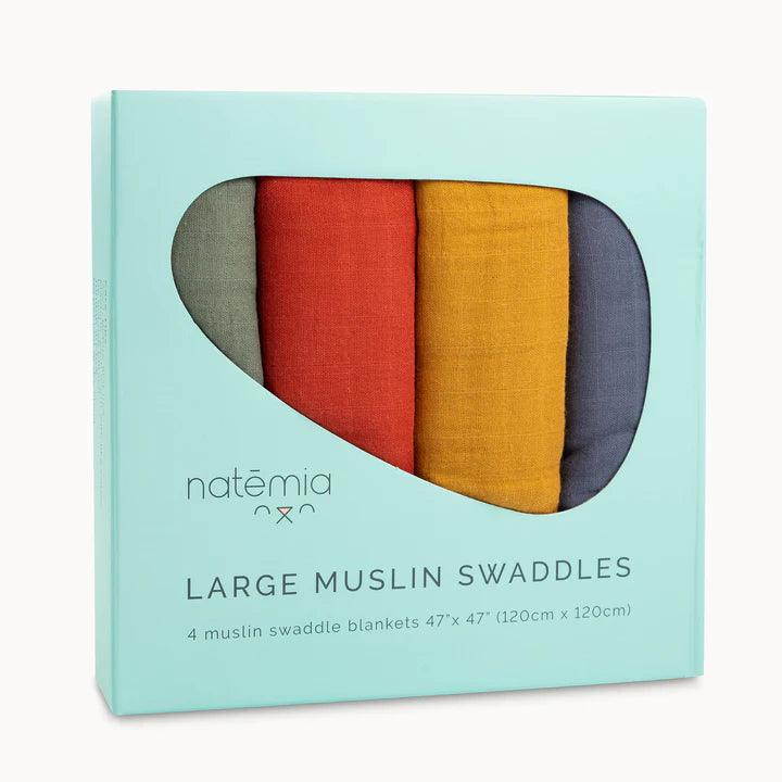 Natemia Muslin Bamboo Swaddle Blankets- 4 pack