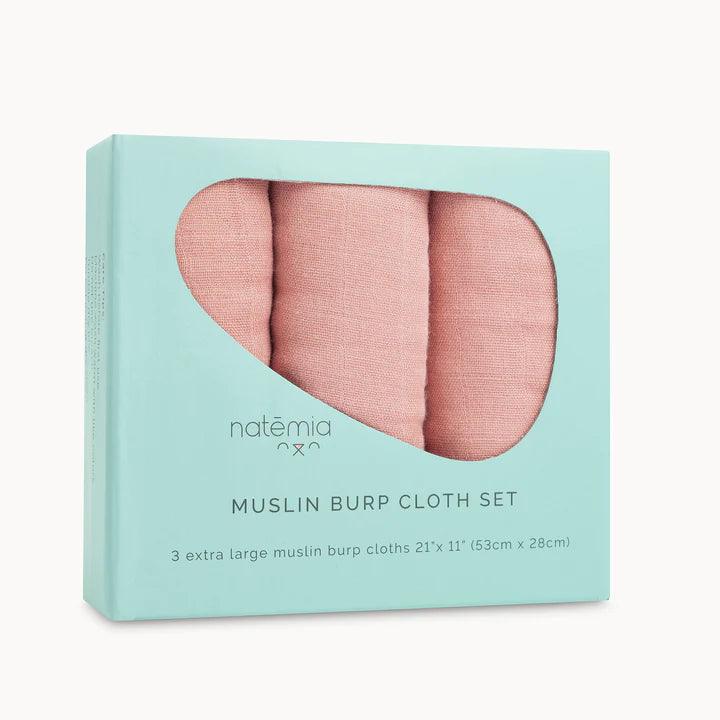 Natemia Ultra Soft Muslin Bamboo Burp Cloths - 3 Pack - Misty Rose