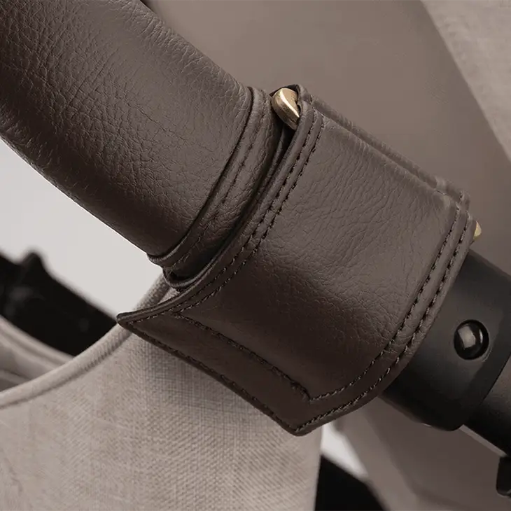 - Leatherette straps securely attach to stroller pushbar keeping it in reach