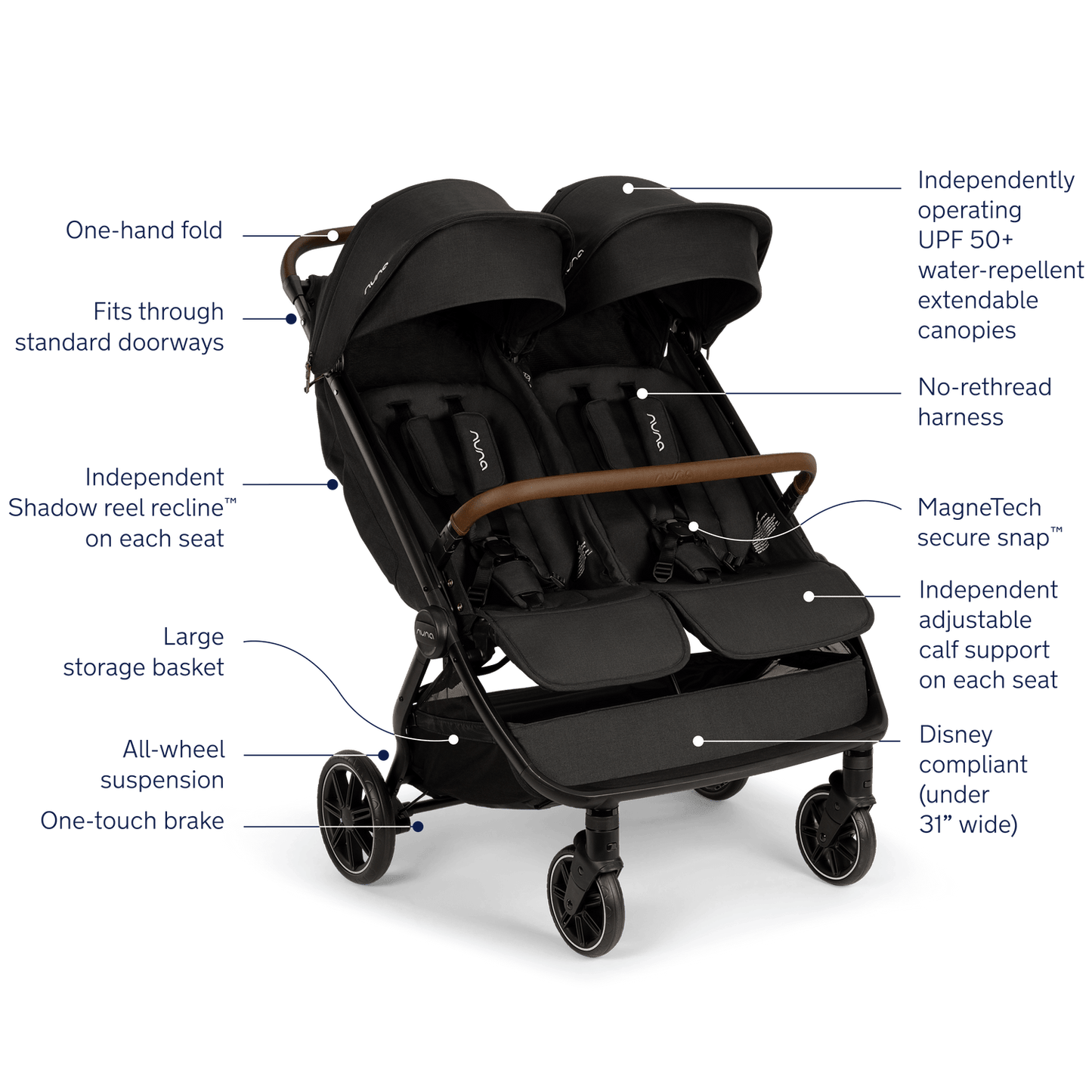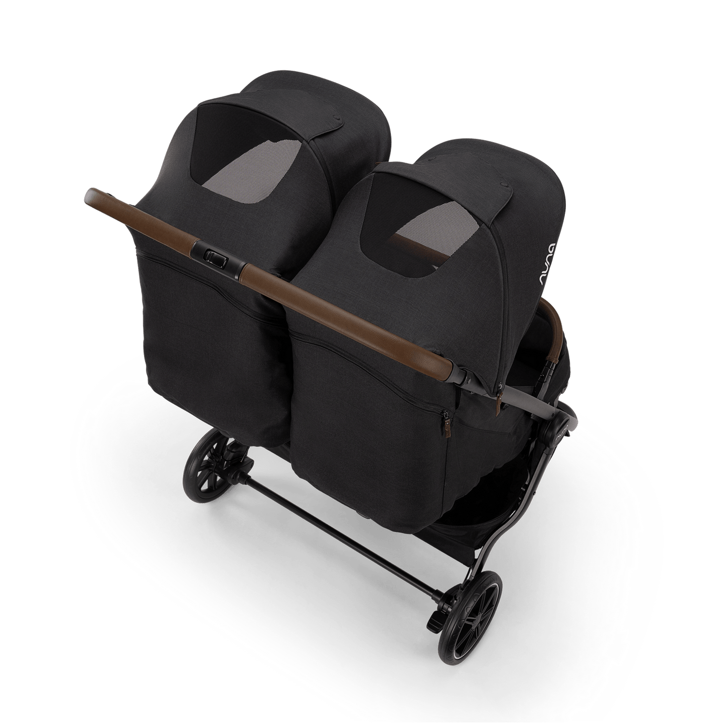 - Seats and canopies are completely independent of one another for customized strolls for two