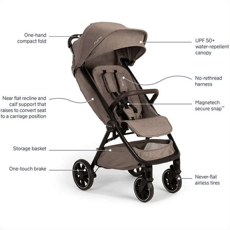 - Creates a sleek-looking travel system connecting directly with Nuna PIPA™ series car seats with just a click—no adapters needed