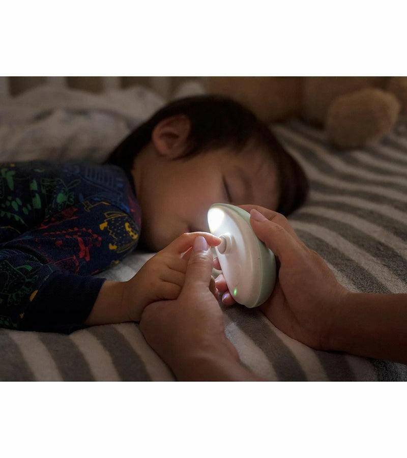 The nail trimmer functions with a motor as quiet as a whisper, enabling you to trim your baby’s teeny nails without waking them from their sleep.