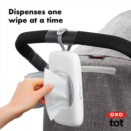 Wherever you take your tot, you know there’s always a chance of a mess. Our On-the-Go Wipes Dispenser has a handy strap to secure it to a stroller or diaper bag, so you can always have it at the ready. A simple, one-handed push of the button reveals a large opening that dispenses one wipe at a time.