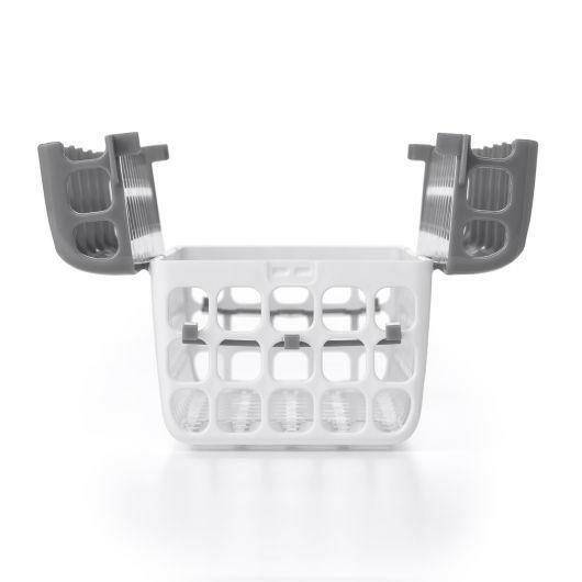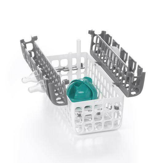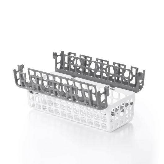 Don’t let bottle nipples, sippy cup parts, straws and removable valves get lost in the dishwasher. Accommodates up to 8 bottle nipples and bottle parts. Doors open symmetrically to prevent toppling during loading and unloading. Internal flip-down straw holders keep straws secure and upright.