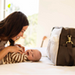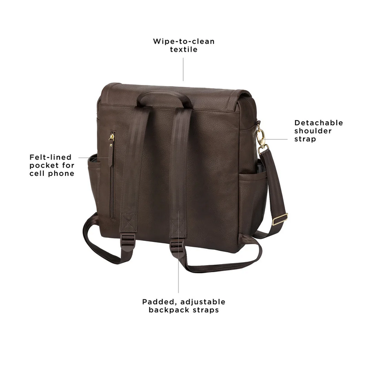 Petunia Pickle Bottom’s signature vegan leatherette fabrics are naturally water-resistant and can be cleaned with a damp cloth and mild detergent. Do not dry clean. Not machine washable.
