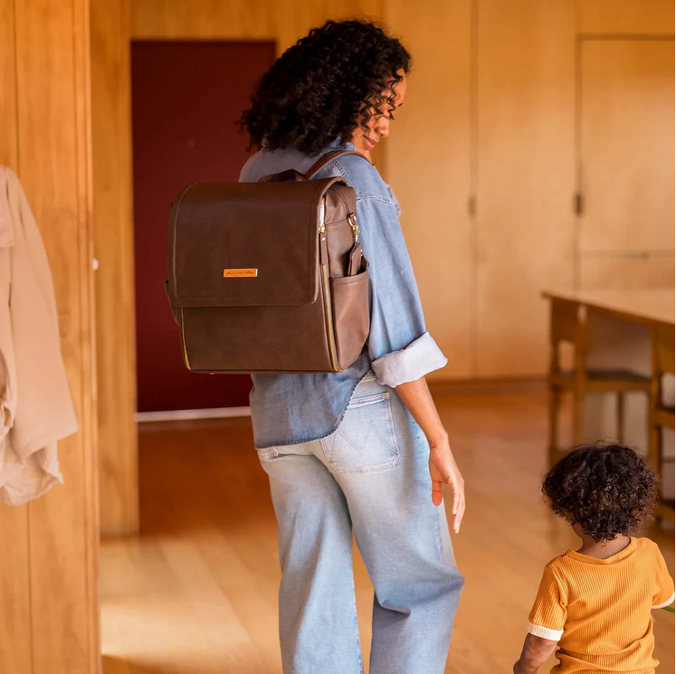 Designed with mom in mind, the Boxy Backpack makes zero compromises. Spacious, but not bulky. Sleek and professional looking, but so many pockets. Backpack straps and a removable tote strap. Built-in diaper bag changing station that is padded, removable and washable. There is even a felt-lined pocket for your phone. Yes, you can have it all.