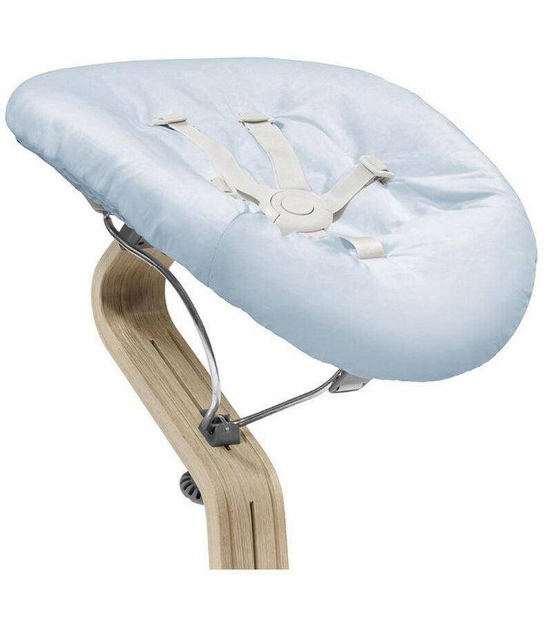The Stokke® Nomi® Newborn Set is designed to provide your baby with a soft and cozy spot at the center of the family. The raised height is ideal for "talking", playing and maintaining contact with your baby. _ The Stokke® Nomi® chair with the attached Newborn Set is easy to move around the house. Wherever you need an extra pair of hands - it can be seamlessly adjusted between an almost horizontal and more upright positions to meet your baby's changing needs. It offers a gentle bounce responding to your baby's natural movement while your baby's head remains stable.