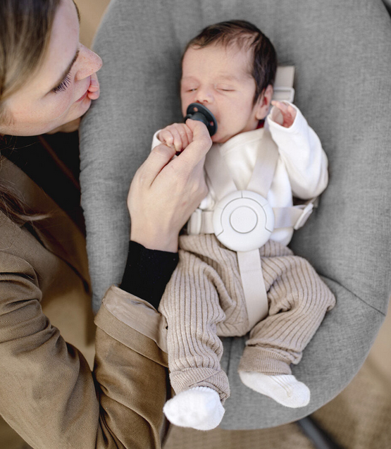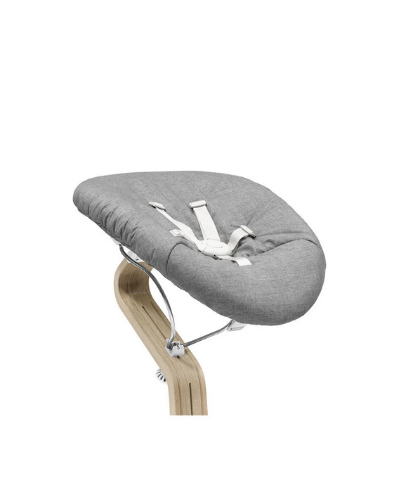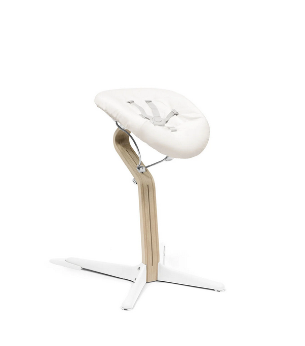 The Stokke® Nomi® Newborn Set is designed to provide your baby with a soft and cozy spot at the center of the family. The raised height is ideal for "talking", playing and maintaining contact with your baby. _ The Stokke® Nomi® chair with the attached Newborn Set is easy to move around the house. Wherever you need an extra pair of hands - it can be seamlessly adjusted between an almost horizontal and more upright positions to meet your baby's changing needs. It offers a gentle bounce responding to your baby's natural movement while your baby's head remains stable.