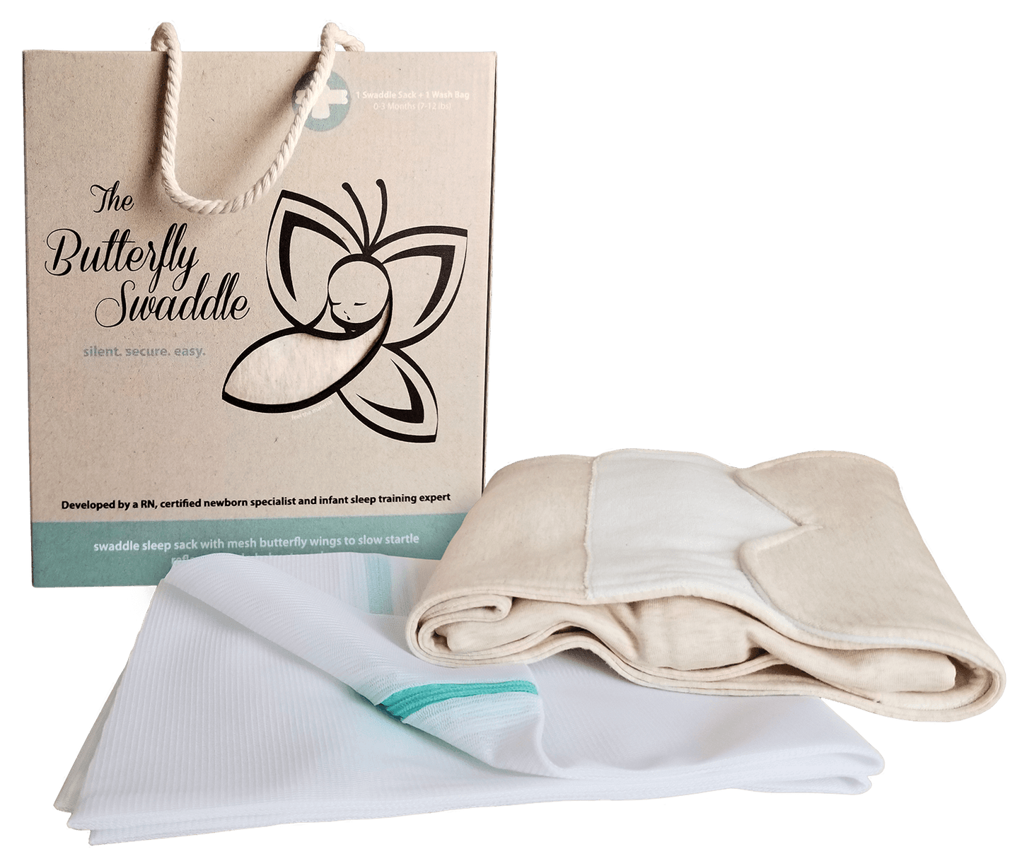 The Butterfly Swaddle is a super soft, organic sleep sack with patented butterfly wings, a swaddle wrap with silent closure, and comes with a mesh laundry bag. This unique swaddle sack slows baby’s startle reflex while creating a sense of security and comfort, assuring a more calm, sound, and restful sleep