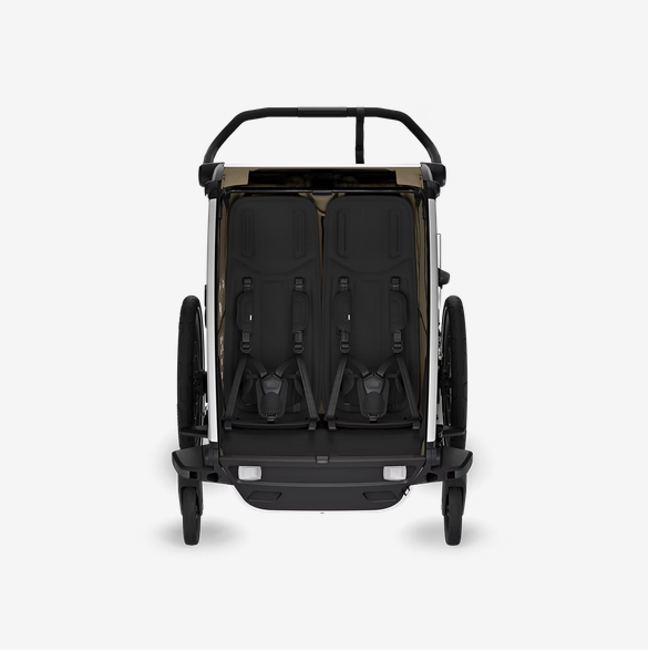 Inside the Thule Chariot Cross 2, children are greeted with plush, ergonomically designed seating for unparalleled comfort. The modular seating ability means that you can choose to have one kid sitting in the middle, or two kids on either side of the trailer. The Thule Chariot Cross 2 is committed to sustainability, utilizing materials that are not only PFAS free but resist sun damage and offer the possibility for repair or replacement, extending the lifespan of your trailer.