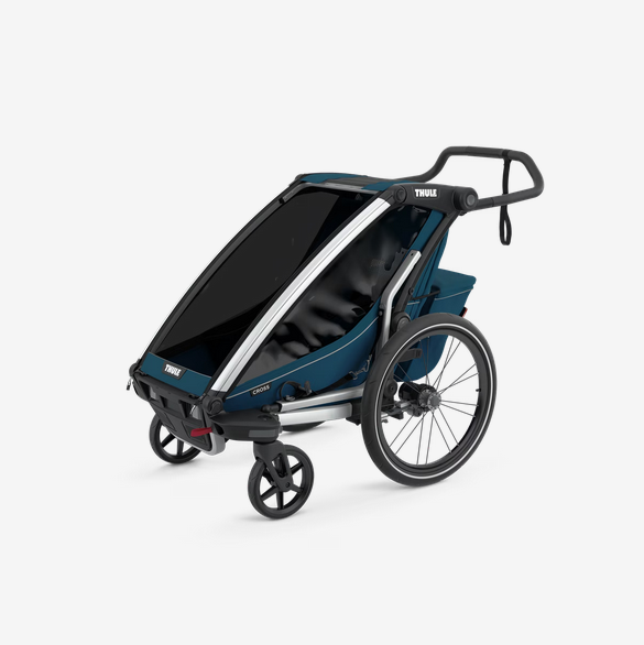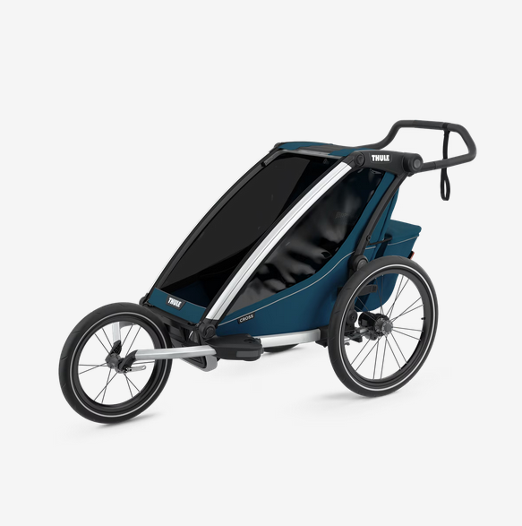 Thule Chariot Cross gives you the freedom to enjoy almost any outdoor adventure with your child. It is designed for active families who want a versatile, tough, and stylish bike trailer, and who love being outdoors all year round. The all-round trailer and stroller offers comfort and flexibility for families with an active lifestyle, and the optional Jogging Kit (sold separately) makes it a great training partner. An extra large cargo bag provides additional space for what you need to bring. Includes Standard and Comfort features.