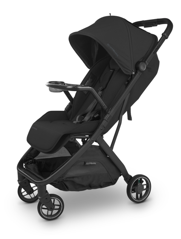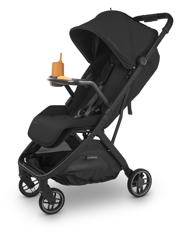 Keep your toddler satisfied while strolling with the perfect snacking surface and drink holder that attaches to the Minu stroller.