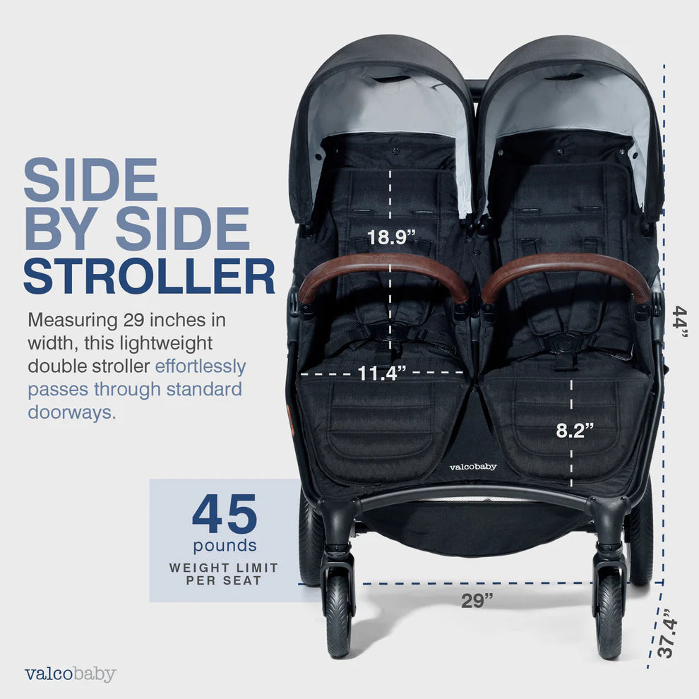 LIGHTWEIGHT & PORTABLE - Weighing only 28 lbs, the Valco Baby Trend Duo Sport double side by side stroller is a super lightweight dual stroller designed for easy maneuverability and safe travel. With Infinity (no Air) Sport Tires included, the foldable design is perfect for errands, walks, day trips, and family outings.