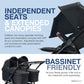 New for 2025: Almost Full Recline as well as Newborn Enclosure tucked under the footrests