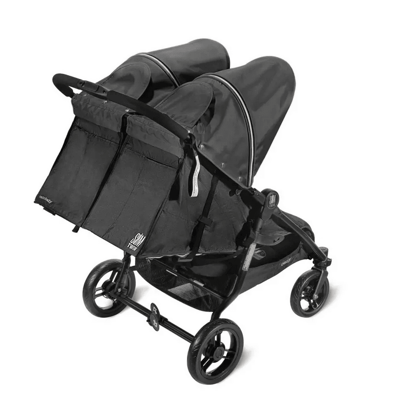 The Slim Twin Stroller is designed with small spaces in mind. At less then 26 inches wide, this lightweight double stroller will fit through even the smallest openings. Featuring an easy compact one hand fold, independent reclining seats, canopy extensions and adjustable foot rests and weighing under 24 lbs, the Slim twin is great double stroller for travel and inner city use.