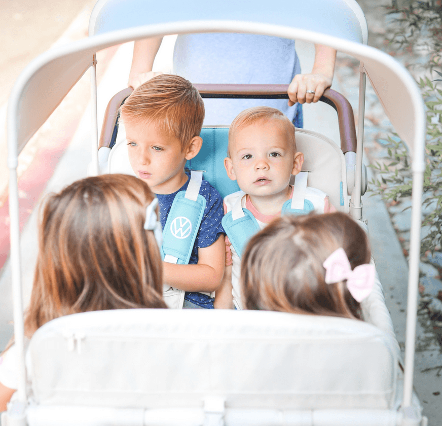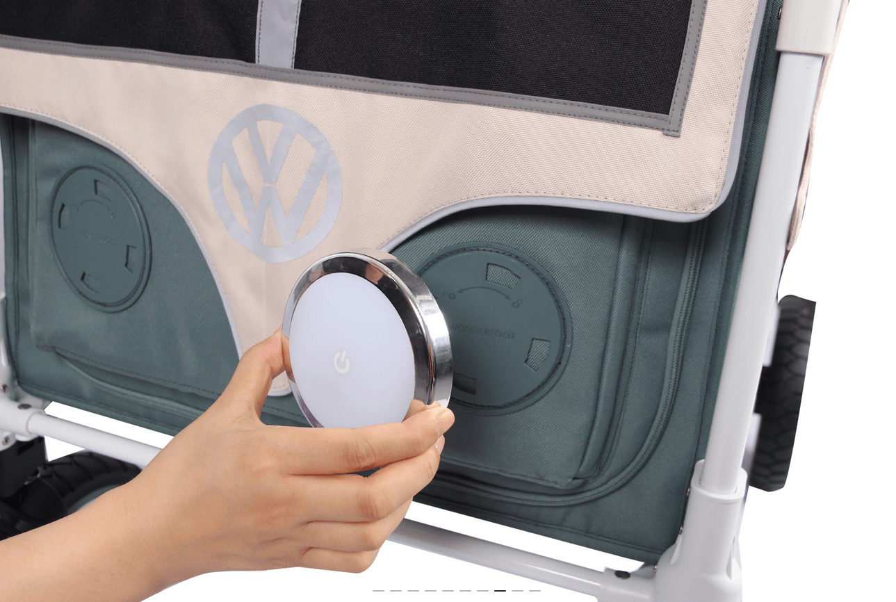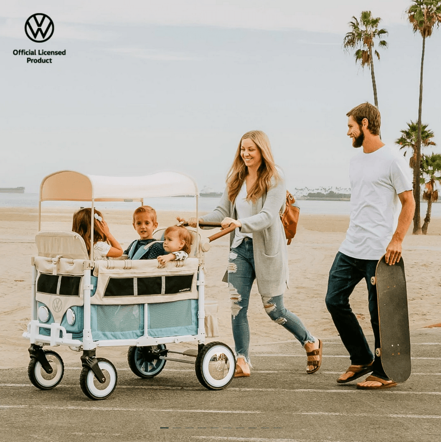 Stroller wagons just got a little more groovy. Inspired by the vintage VW bus, our new special edition stroller wagon will fulfill your nostalgic fantasies with all those classic WonderFold elements. It includes features like the classic VW bumper, functioning headlights, and retro all-terrain XL wheels!